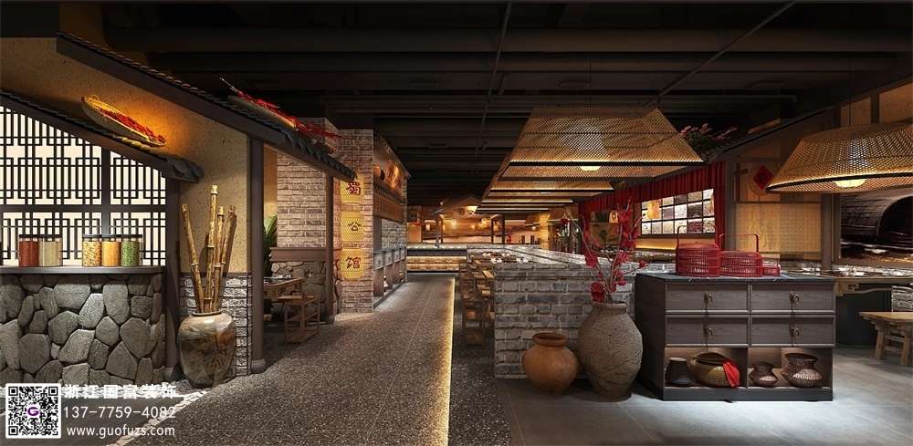 農家民俗風火鍋店裝修設計效果圖