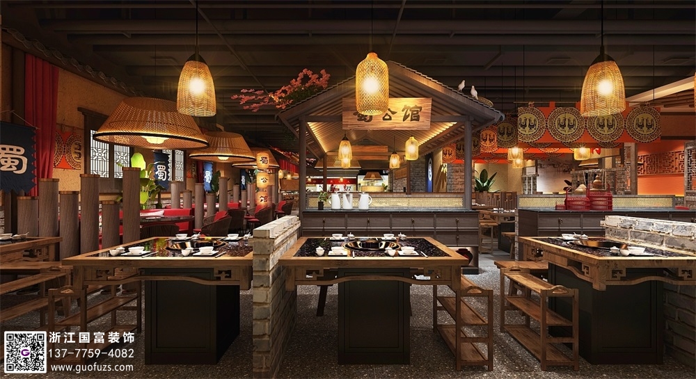 川式老火鍋店裝修設計案例效果圖