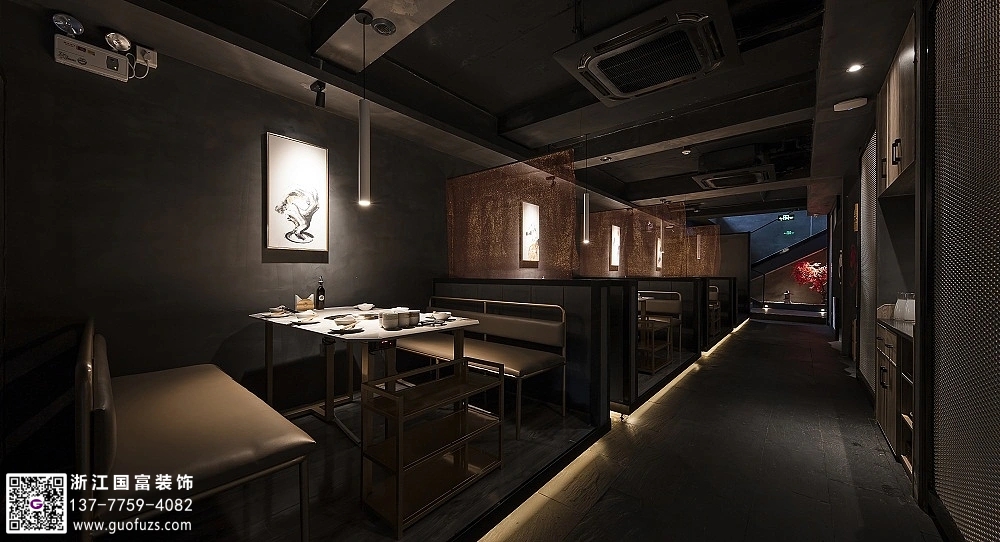黑灰風(fēng)格簡(jiǎn)約火鍋店裝修設(shè)計(jì)案例