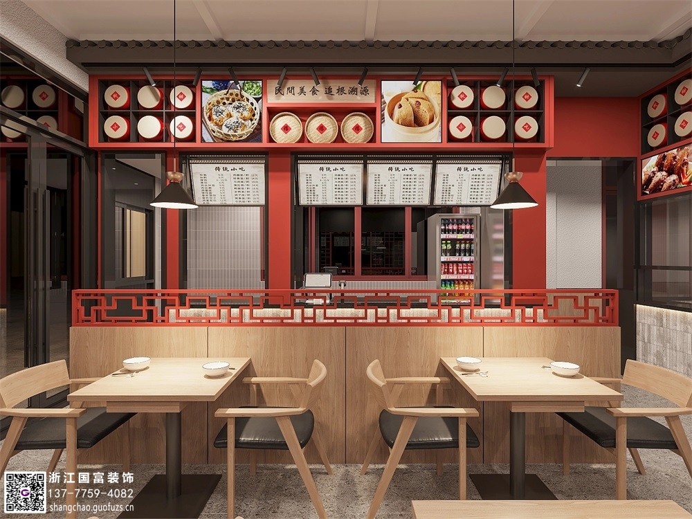 義烏小吃餐飲店裝修設(shè)計案例效果圖